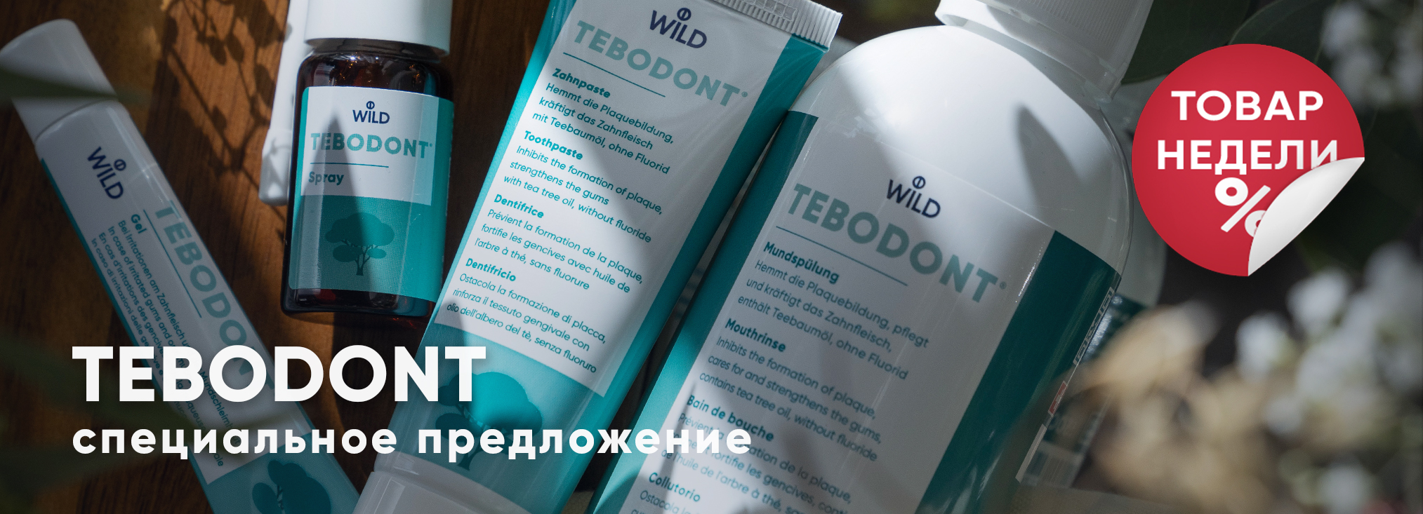 TEBODONT-F Ополаскиватель для полости рта с маслом чайного дерева (Melaleuca Alternifolia) и фторидом, 500 мл