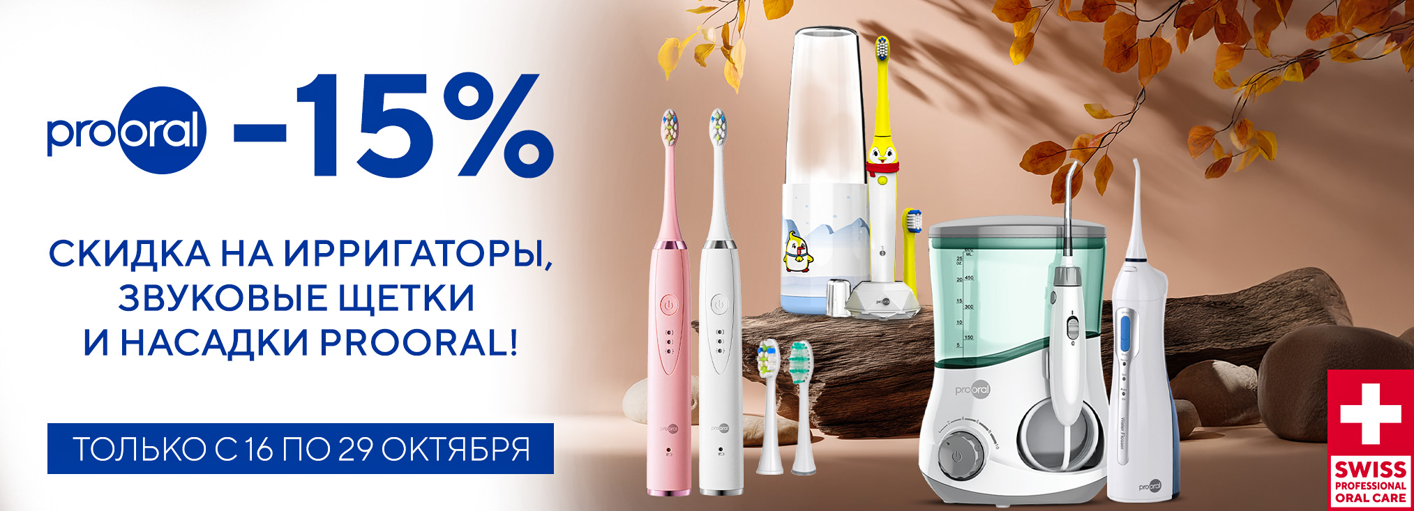 Акция! Скидка -15% на ирригаторы, звуковые щетки и насадки Prooral