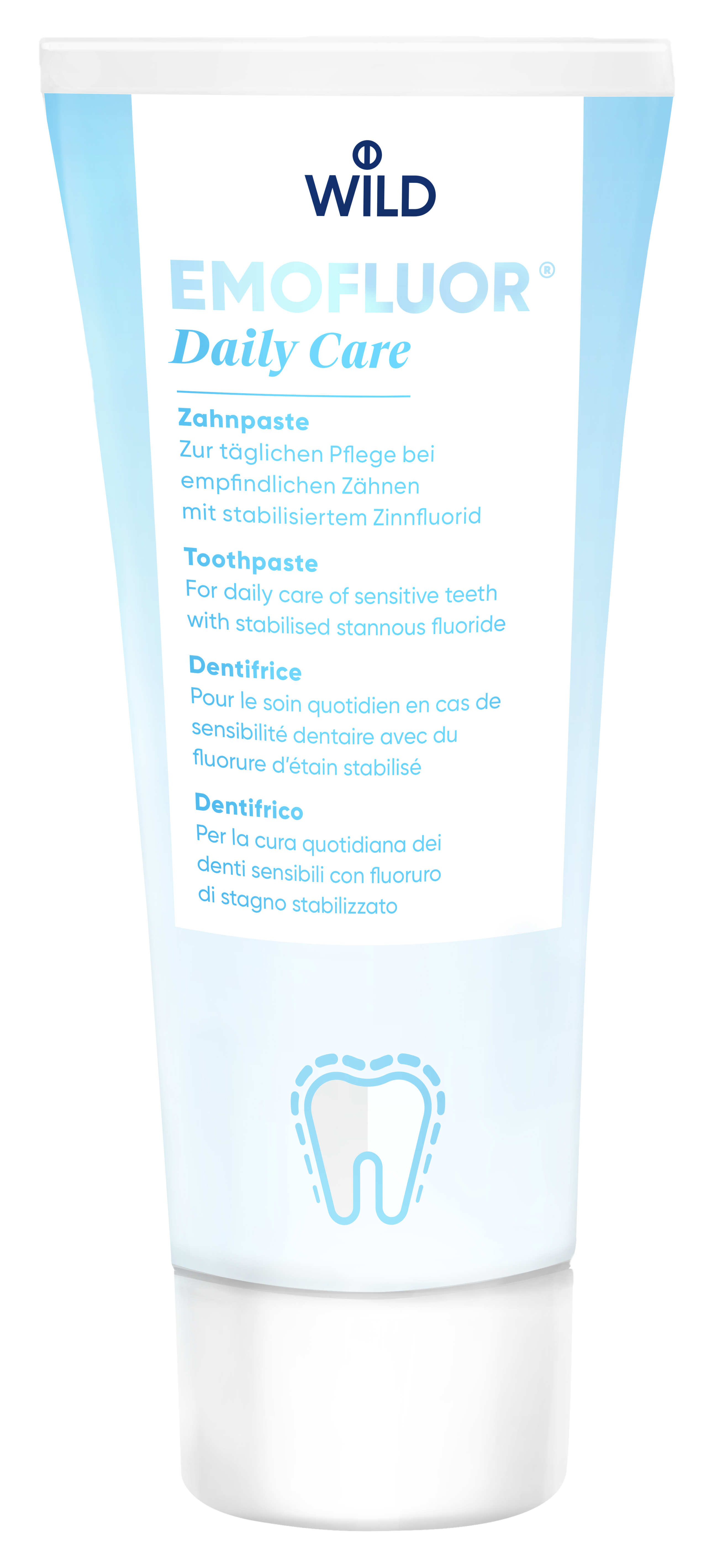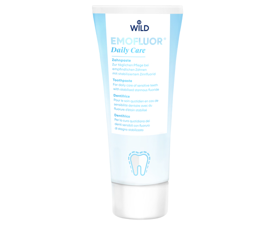 Применение фторида олова для ухода за зубами и полостью рта является чрезвычайно эффективным. Однако стабилизация этого фторидного соединения в составе продукта для гигиены полости рта без угнетения ее биологической активности является сложной задачей. Ее удалось решить благодаря стоматологическим исследованиям компании Dr. WILD, следовательно, были разработаны зубной гель (интенсивное лечение) и зубная паста (ежедневное применение), содержащие стабилизированный фторид олова.