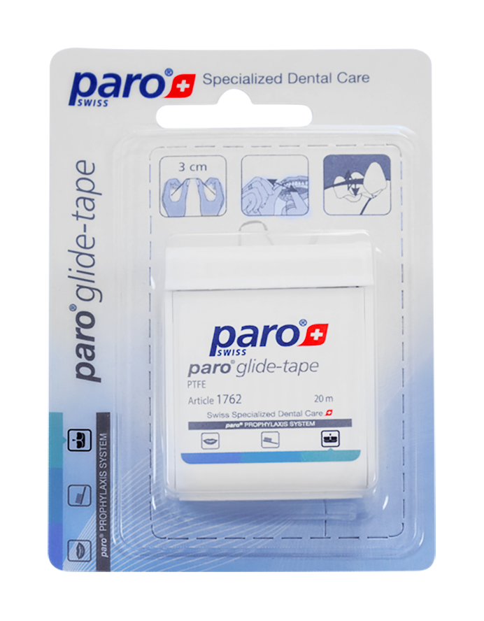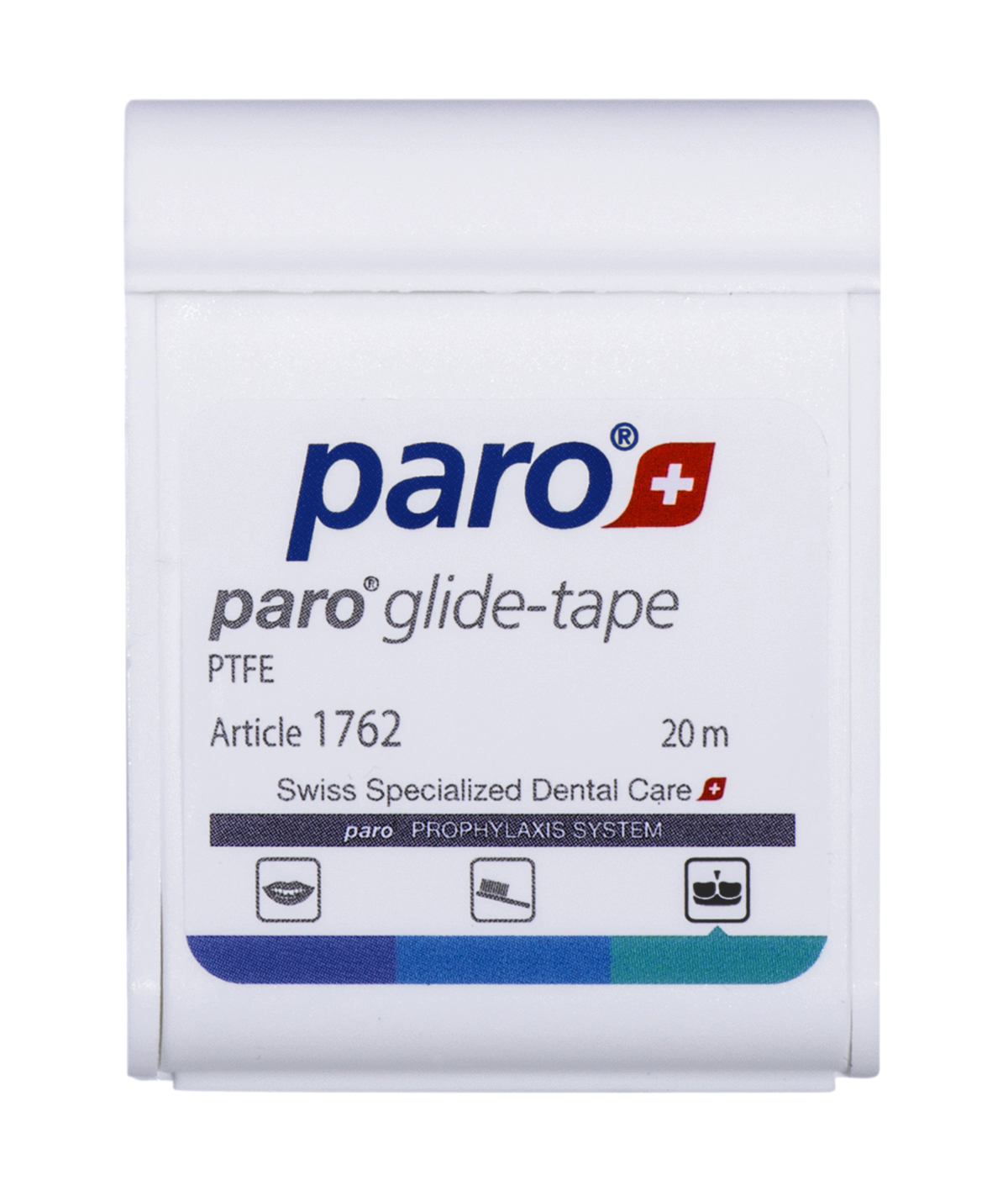paro® glide-tape зубная лента изготовлена с применением тефлона, благодаря чему имеет много преимуществ: