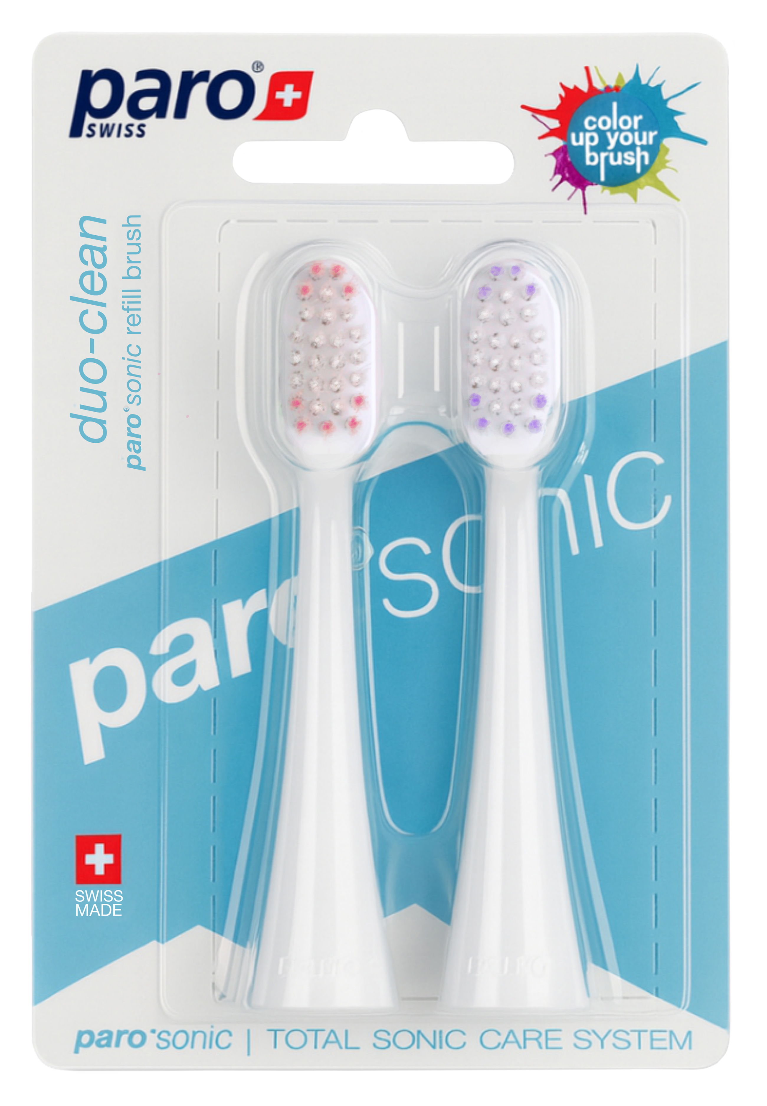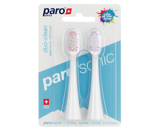 Сменная щетка paro®sonic duo-clean содержит комбинацию конических, тонко заостренных и закругленных щетинок. Топологическое расположение щетинок закругленной формы повторяет рельеф поверхности зуба. Это обеспечивает более интенсивную очистку на глубоком уровне.