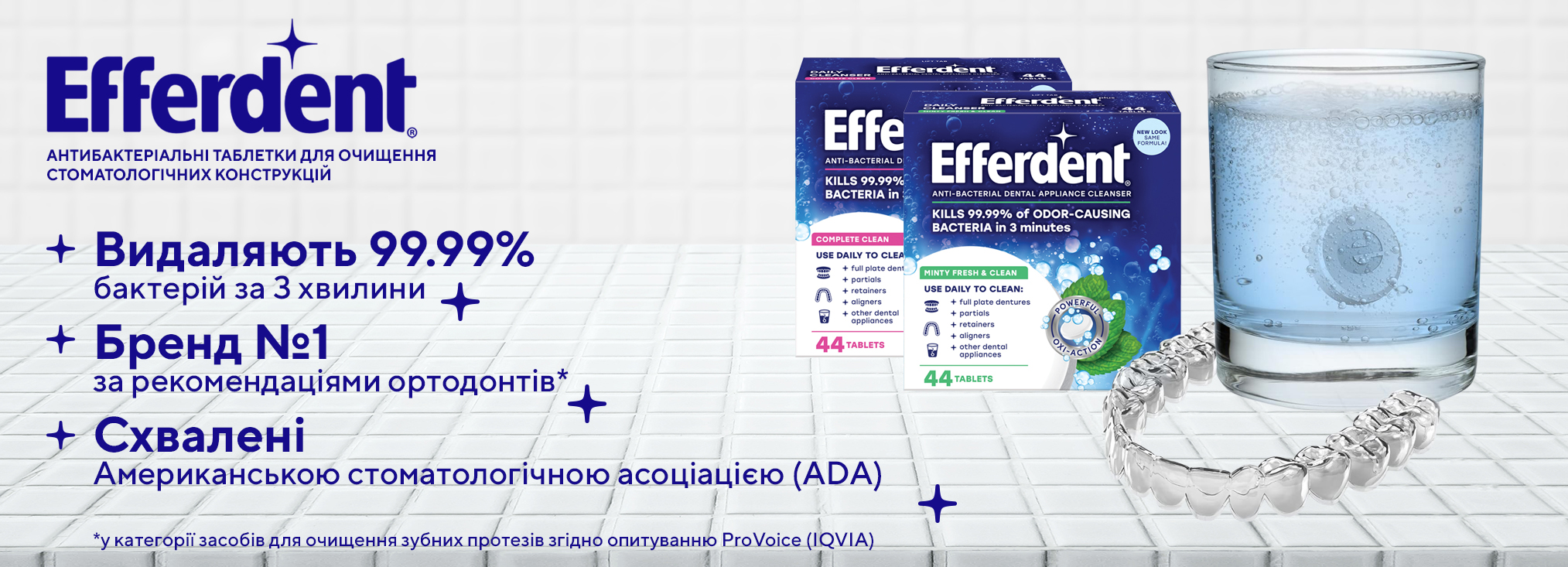 Efferdent М'ятна свіжість та очищення Антибактеріальні таблетки для очищення зубних протезів та ортодонтичних апаратів, 44 шт.