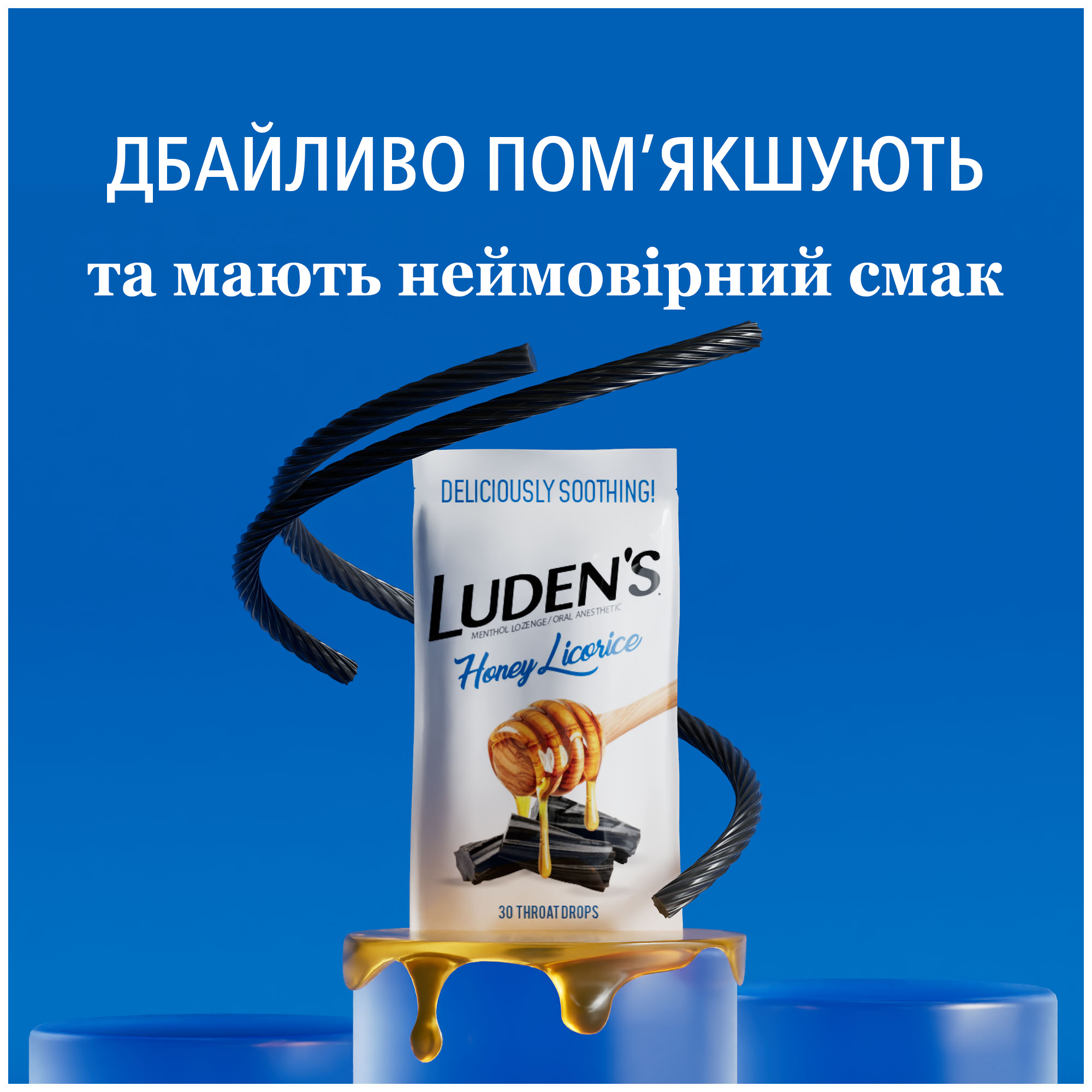 Luden’s Льодяники з ментолом, анестезуючі для горла та порожнини рота, мед і лакриця, 30 шт.