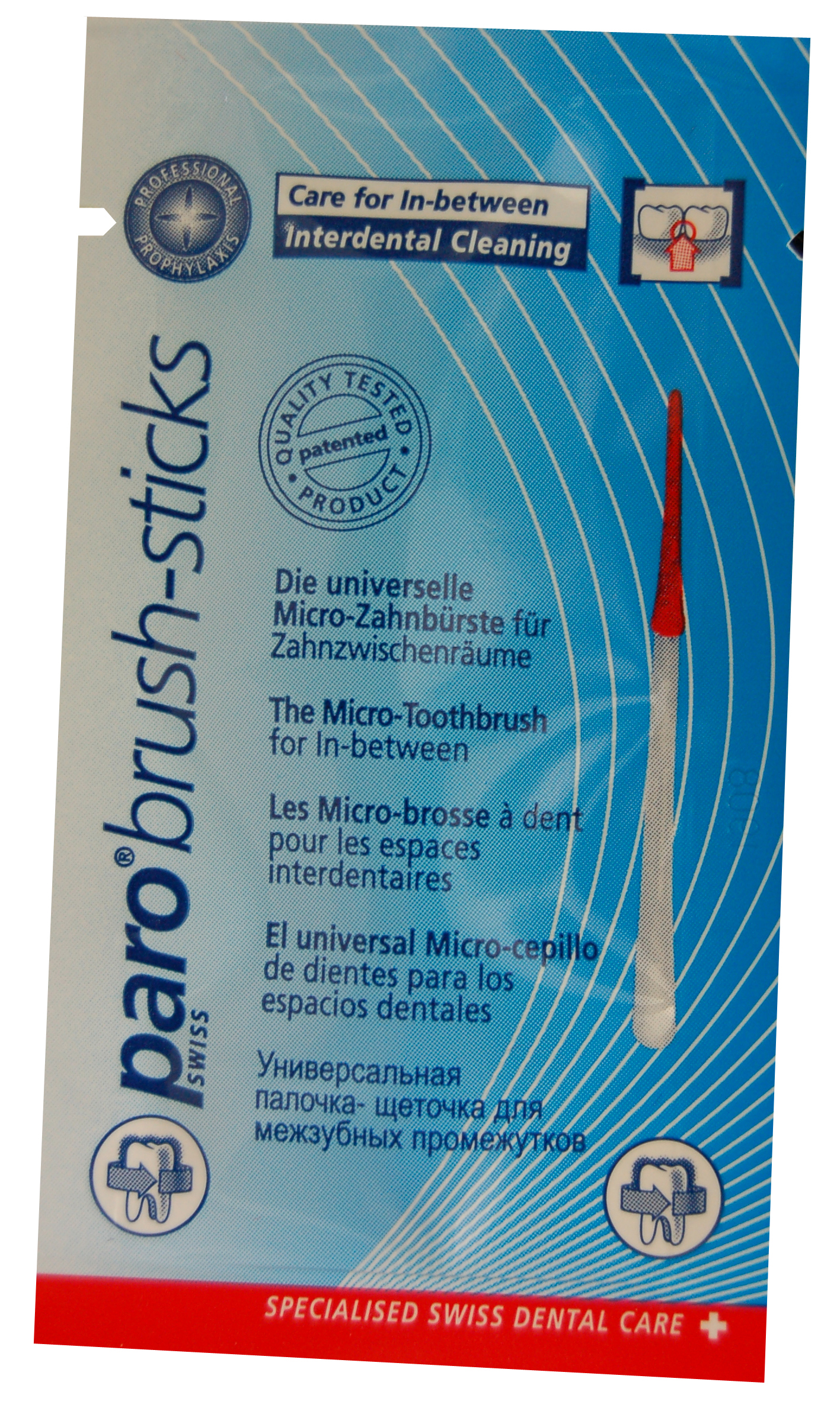 Передові технології в області гігієни порожнини рота. Наша «зубочистка майбутнього» запозичала форму та легкість у використанні від її дерев'яного попередника. На цьому подібності закінчуються, оскількиparo® brush-stick Зубні мікро-щітки мають пластикову основу з оксамитовим покриттям . Це додаткове покриття не тільки приємне у використанні, але й створює умови для повного та ретельного видалення бактеріального нальоту. Їхня дуже тонка форма, надзвичайно гнучка, що сприяє доступу практично до кожного міжзубного проміжку.